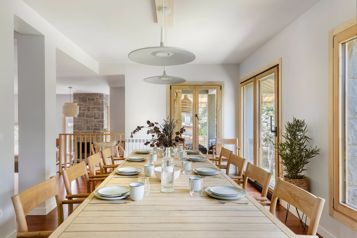 El corazón de la casa es su luminoso salón de doble altura con una acogedora chimenea, perfecto para esas conversaciones al calor del fuego, y presidido por una Smart TV Samsung «The Frame» de 75 pulgadas. El imponente comedor imperial para 15 comensales es el escenario ideal para vuestras cenas y celebraciones.
